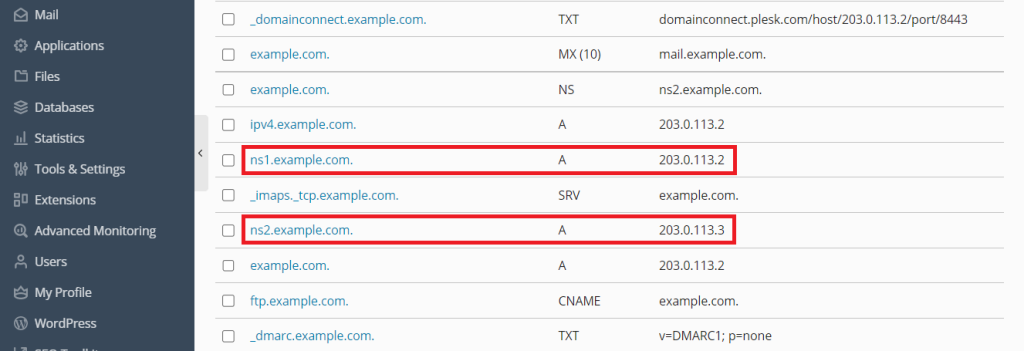 If you manage DNS settings through your hosting panel, here’s how to update A records for custom nameservers: