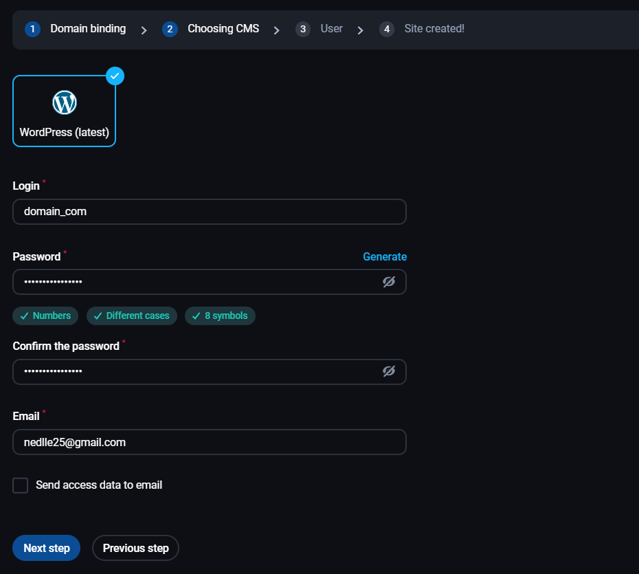And that’s it – the WordPress site has been successfully created in FASTPANEL.