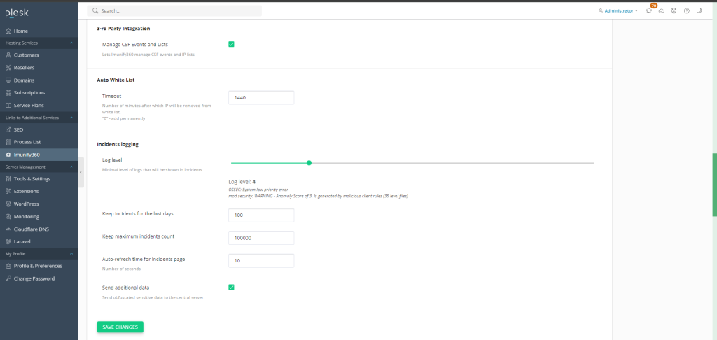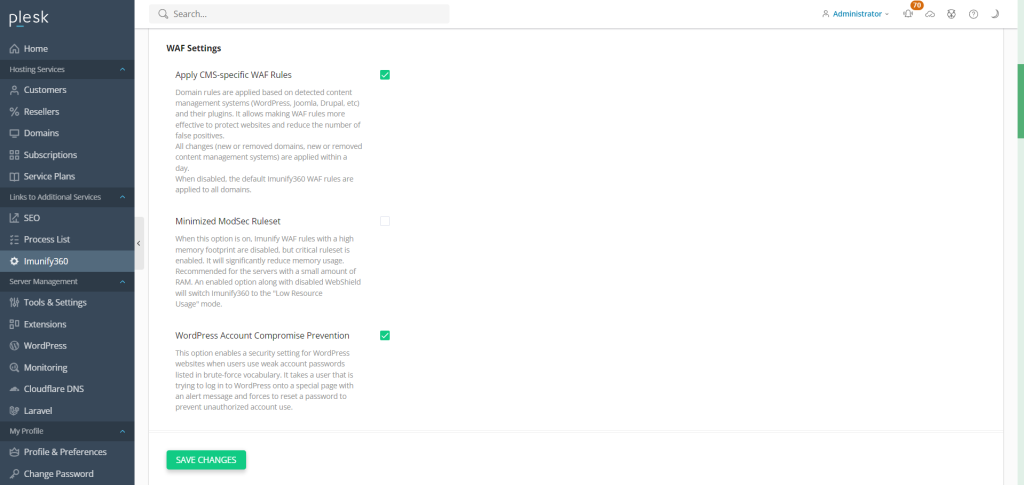 That’s it. You can now use Imunify360 from Plesk and change the default Imunify360 settings to reflect your needs.